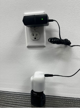 | Adaptor: Connects to the wall charger. The battery plugs into this adaptor. |