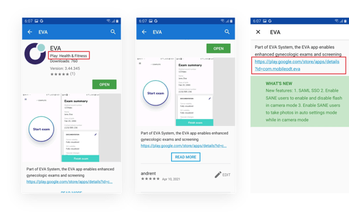 Google Play - EVA App page is being opened.